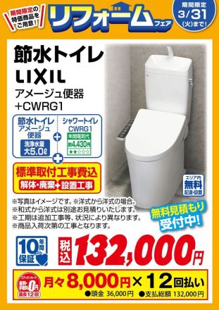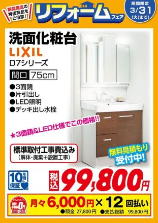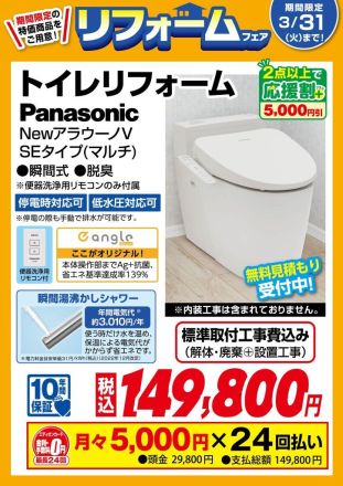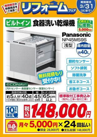 トイレ・洗面台・IHコンロ・食洗機・レンジフードなど多くの商品がお買得となっています。