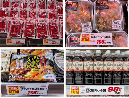 ●静岡県産他 いちご 1パック (本体)498円(税込538円) 50パック限り! ●牛肉とニンニクの芽炒め <解凍> 100g当り (本体)108円(税込117円) ●寿がきや 八丁味噌煮込みうどん 2人前・316g (本体)298円(税込322円) 50個限り! ●UCC 午後の時間 ストレートティー (低糖) 900ml (本体)98円(税込106円) 数量限定!『売り切れご免』です! ご来店お待ちしております(^^)/k