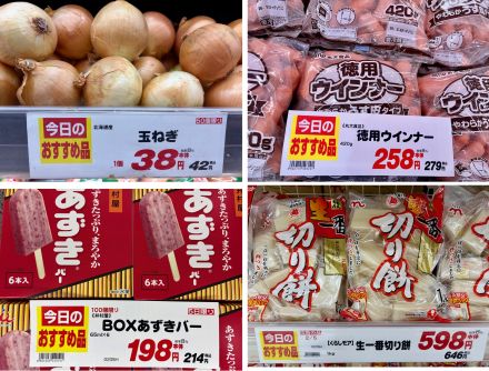 ●北海道産 玉ねぎ 1個 (本体)38円(税込42円) 50個限り! ●丸大食品 徳用ウインナー 420g (本体)258円(税込279円) ●井村屋 あずきバー マルチパック 65ml×6 (本体)198円(税込214円) 100個限り! ●くらしモア・越後製菓 生一番 切り餅 1㎏ (本体)598円(税込646円) 数量限定!『売り切れご免』です! ご来店お待ちしております(^^)/k